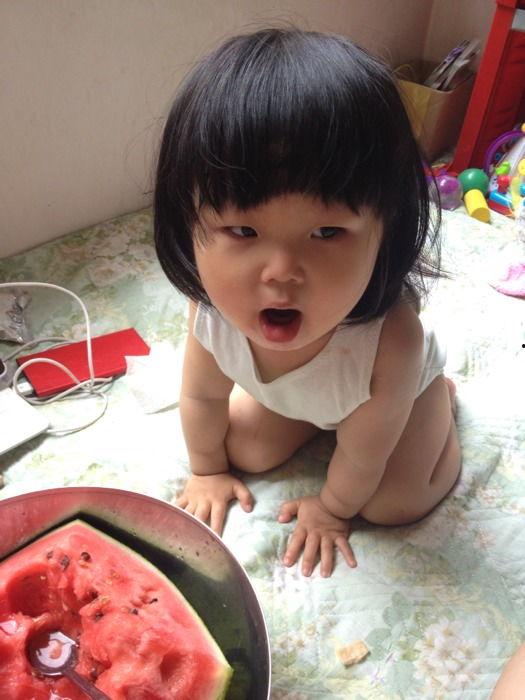 萌宝吃瓜,萌态百出